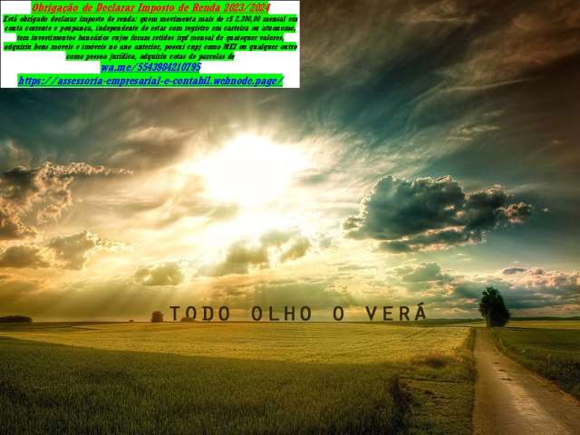 Declarar Imposto de renda 2024 – Quem Está Obrigado Certidões Negativas Receita Estadual/Prefeitura – Como Emitir Consultoria Empresarial e Contábil e Microempresa–Assessoria tributária recursos humanos–auditoria em folha de pagamento. Consultoria imposto de renda-assessoria financeira -microempr...